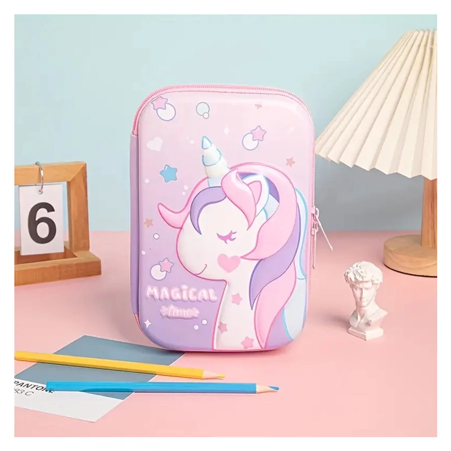 Ova vesela pernica s trodimenzionalnim motivom jednoroga ističe se ne samo svojim razigranim izgledom, već i praktičnim unutarnjim rasporedom. Višeslojna konstrukcija i velika kapacitet omogućuju uredno spremanje svih školskih potrepština. Zahvaljujući vodootpornom vanjskom sloju i kvalitetnom patentnom zatvaraču, pernica je izdržljiva i pogodna za svakodnevnu upotrebu.
