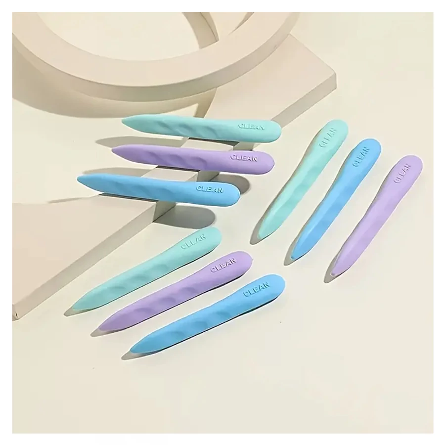 Ovaj set od 9 gumica u različitim bojama idealan je za školsku, vrtićku ili kućnu upotrebu. Izrađene od ekološki prihvatljivog TPR materijala, gumice su bez mirisa i ne ostavljaju mrvice, osiguravajući čistoću i urednost tijekom korištenja. Ergonomski oblik s rupičastim držačem omogućuje sigurno i udobno korištenje čak i pri dužem brisanju. Kraj gumice s oznakom „CLEAN” pruža dodatnu preciznost kod detaljnog brisanja.