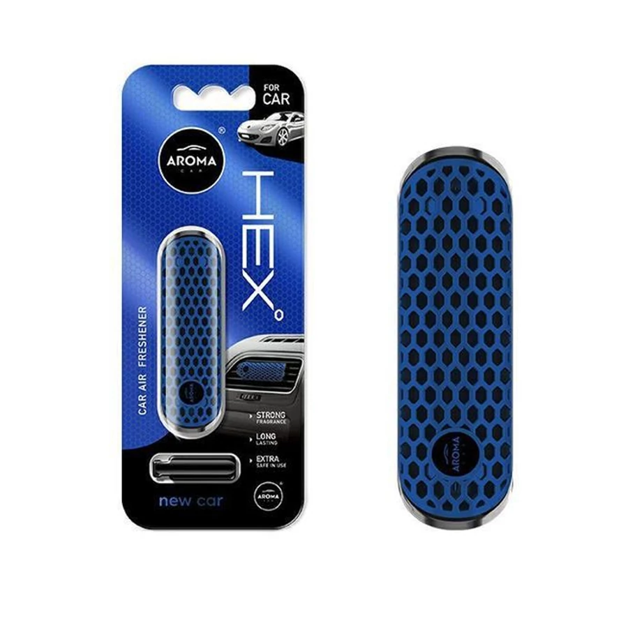 HEX AROMA je nova generacija mirisa za automobile s polimernom bazom, namijenjena jednostavnom pričvršćivanju na ventilacijsku rešetku. Njegov sofisticiran, ali nenametljiv dizajn i ugodna mirisna kompozicija čine ga idealnim dodatkom za svako putovanje.