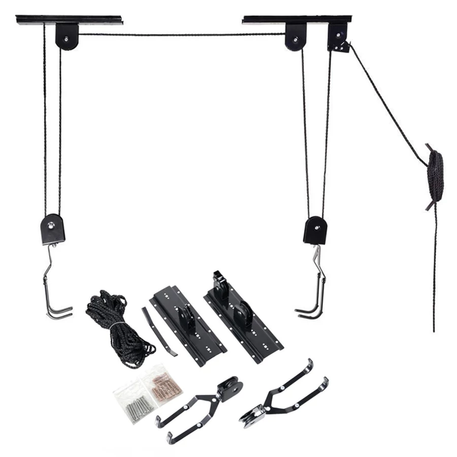 BIKE LIFT stropni nosač za bicikl pruža praktično i štedljivo rješenje za pohranu bicikala u garaži ili drugim zatvorenim prostorima. Uređaj koristi sustav remenica koji omogućuje jednostavno podizanje bicikla težine do 20 kg na strop, do maksimalne visine od 4 metra.