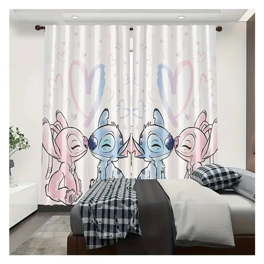 Ovaj 2-dijelni set zavjesa s motivom Stitch i Angel savršen je izbor za dječju sobu, dnevni boravak ili kao sezonski ukras. Izrađene od 100% poliestera, zavjese su lagane, propuštaju svjetlost, a istovremeno pružaju ugodnu sjenu i dekorativni efekt. Romantični uzorak sa srcima i pastelne boje unose razigranost i toplinu u svaki prostor.