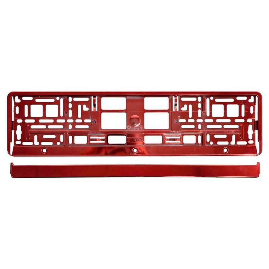 Univerzalni plastični držač registarske pločice, namijenjen standardnim dimenzijama pločica. Metalik crvena boja daje vozilu elegantan i upečatljiv izgled.