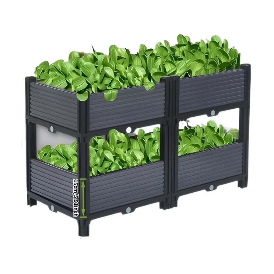 Ovaj dvoslojni, povišeni vrtni pitar savršen je izbor za uzgoj cvijeća, začinskog bilja, rajčica i drugih manjih biljaka. Izdržljiva plastična konstrukcija s ugrađenim sustavom za navodnjavanje pruža praktično i estetski privlačno rješenje za vrt, balkon, terasu ili manja travnata područja.