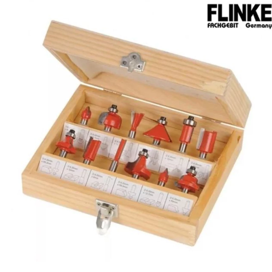 Visokokvalitetni Flinke set glodala omogućuje profesionalnu obradu tvrdog i mekog drva, kao i iverice, šperploče i plastike. Posebno je prikladan za izradu profila na letvicama, okvirima za slike te za dekorativne rubne letvice.