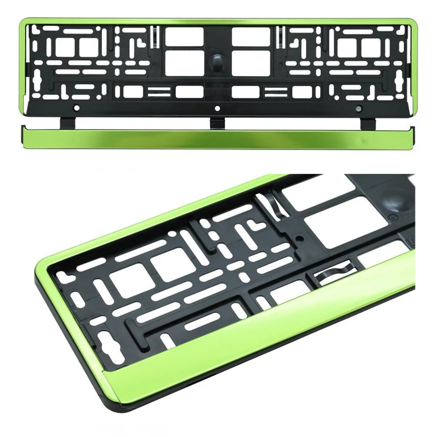 Ovaj plastični držač registarske pločice praktično je i univerzalno rješenje za sigurno pričvršćivanje većine standardnih registarskih pločica. Crni okvir s upečatljivom zelenom dekorativnom trakom daje sportsku i modernu notu vozilu.