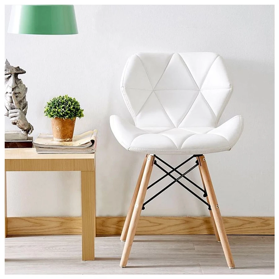 Kuhinjska Stolica u Skandinavskom Stilu – Drveni Okvir, Bijela Eko Koža 073M