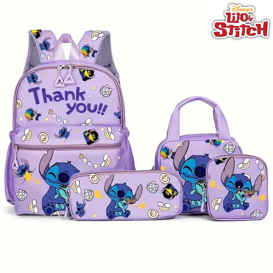 Ovaj 4-u-1 Stitch set savršen je izbor za školu, putovanja ili kao poklon za obožavatelje Disneya. Set uključuje veliki ruksak, torbu za užinu s ručkom, pernicu i malu torbicu za sitnice. Svaki komad ukrašen je živopisnim Stitch motivima i izrađen je od laganog, izdržljivog materijala – idealan za svakodnevnu upotrebu.
