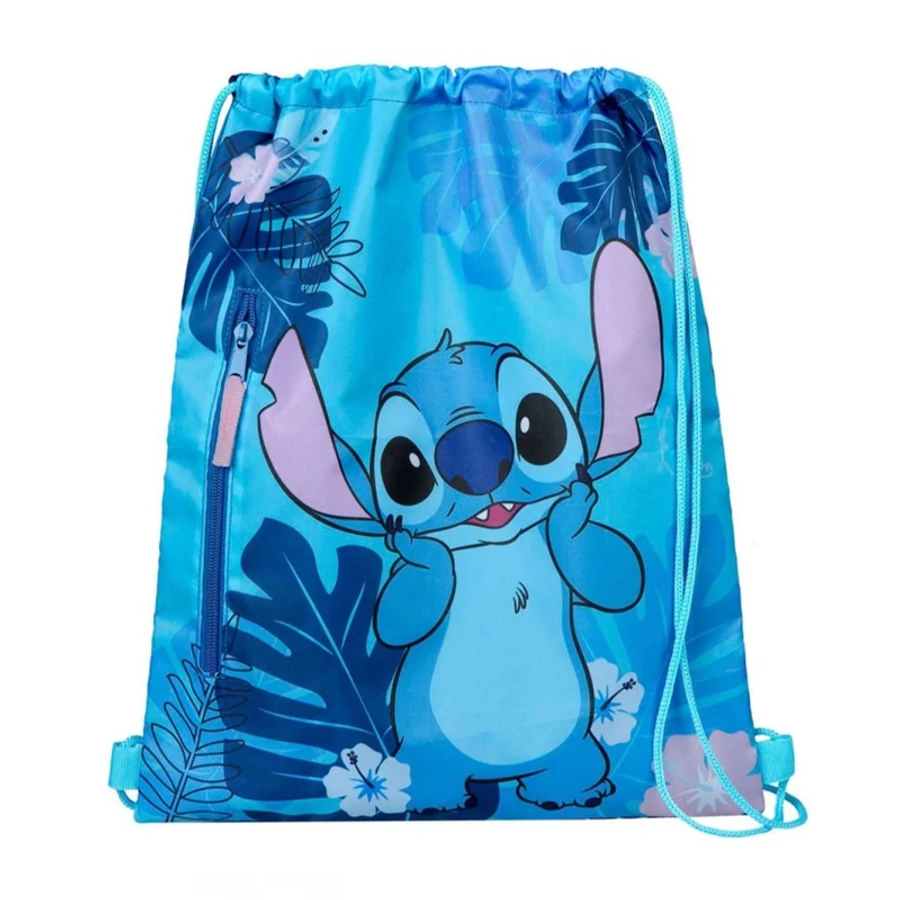 Vesela sportska vrećica s tropskim uzorkom i likom Stitcha, idealna za svakodnevnu upotrebu u vrtiću ili školi. Zahvaljujući praktičnoj veličini i laganom dizajnu, savršena je za nošenje rezervne odjeće, opreme za tjelesni ili igračaka.