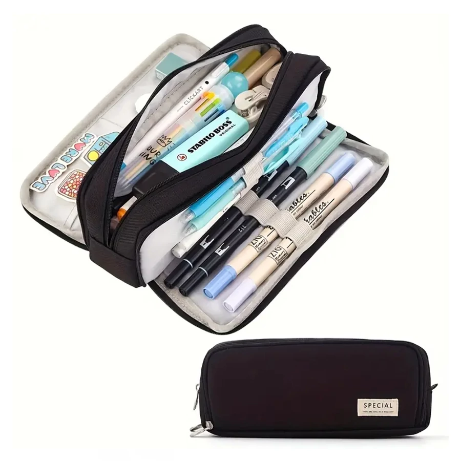 Moderna Višeslojna Torbica za Olovke s Dvostrukim Pregradama, Crna DK1514948-F