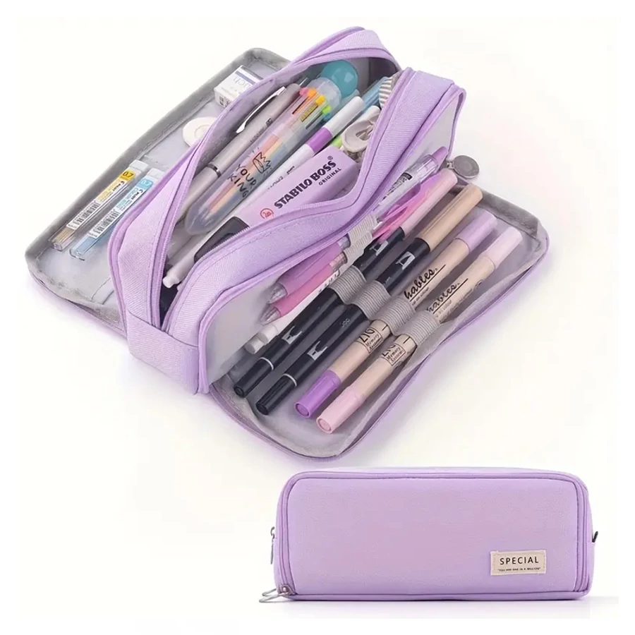Moderna Višeslojna Torbica za Olovke s Dvostrukim Pregradama, Ljubičasta DK1514948-L