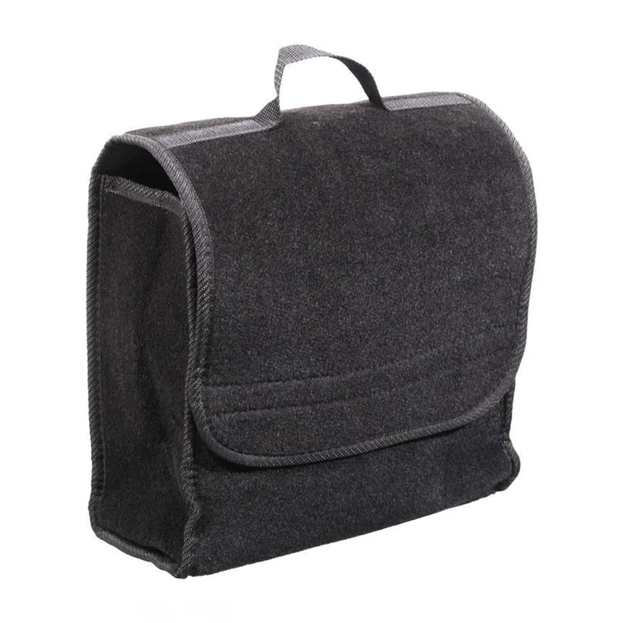 Ova praktična crna tekstilna torba savršena je za organizirano čuvanje manjih alata, automobilskih dodataka, sredstava za čišćenje ili namirnica u prtljažniku vozila. Zatvaranje na čičak i ručka omogućuju jednostavno nošenje, dok čičak trake na stražnjoj strani osiguravaju stabilno pričvršćivanje u prtljažniku.