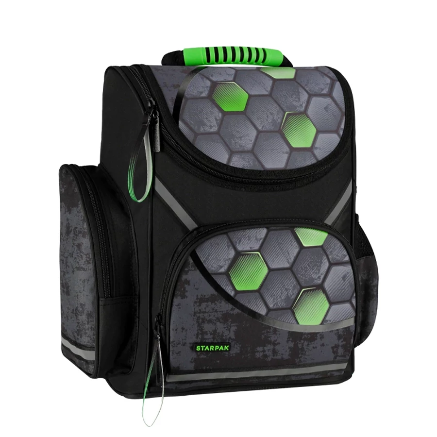 Stilski i praktični školski ruksak s nogometnim motivima, idealan za male školarce koji vole sport. Ergonomski dizajn, organizirana unutrašnjost i reflektirajući elementi osiguravaju udobnost i sigurnost djeteta tijekom svakodnevne upotrebe.
