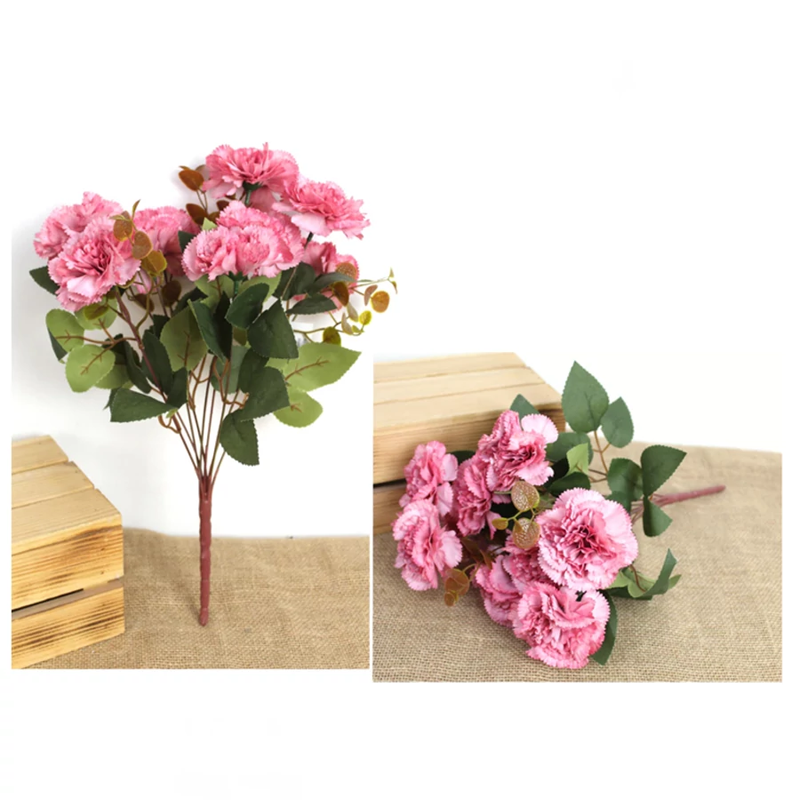 Ovaj dekorativni umjetni buket sastoji se od 9 detaljno izrađenih ružičastih karanfila, dopunjenih prirodno izgledajućim stabljikama i zelenim lišćem. Živopisne boje i realistična tekstura cvjetova pružaju ugodan i skladan vizualni dojam u svakom prostoru.